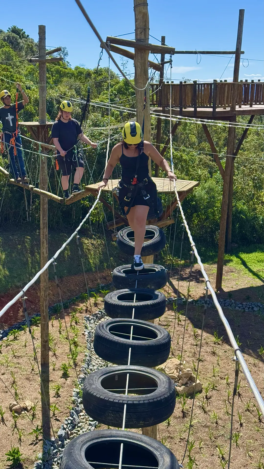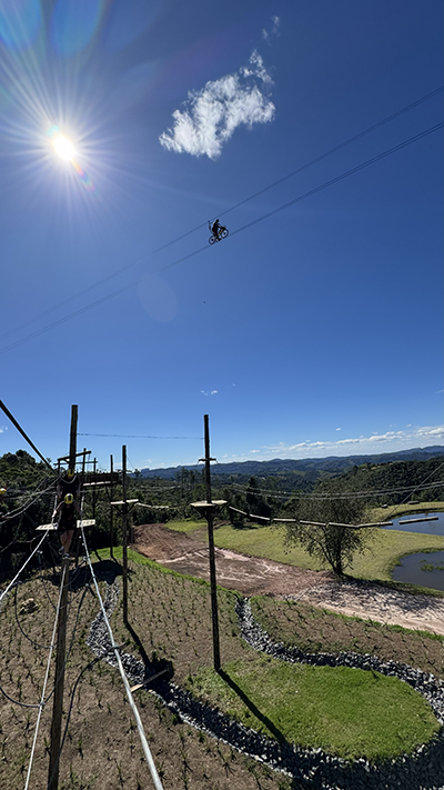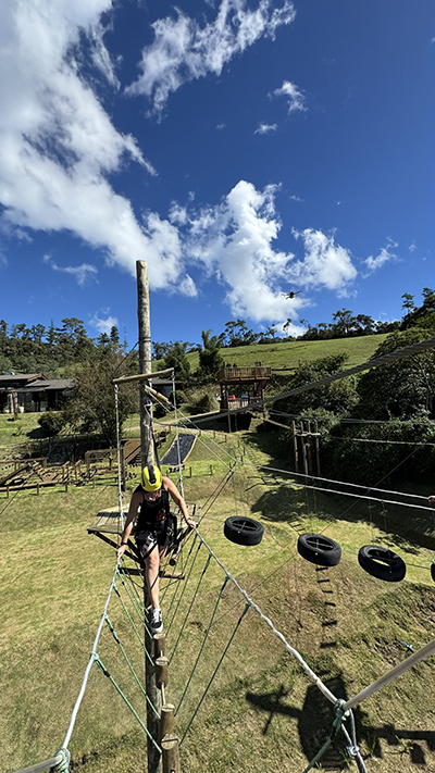 Um percurso de pontes, tirolesas menores e obstáculos suspensos entre as árvores. Ideal para quem quer misturar natureza com desafio, mas ainda assim dentro de um ritmo moderado.